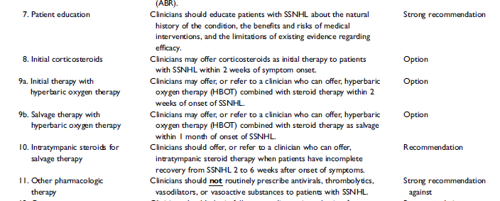 In other words there is no evidence that “treatment” with whatever modality makes any difference to the outcome at least as far as a significant change in the audiogram is concerned.